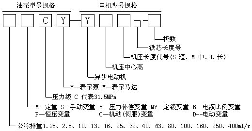 CY-Y系列油泵電機(jī)組具有CY14-1B系列油泵相同的工作參數(shù)和變量形式,可根據(jù)用戶需要,配以不同功率的電機(jī)組成相應(yīng)規(guī)格型號(hào)的油泵電機(jī)組。